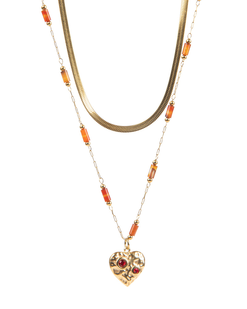 EDELSTAHL KETTENSET 18K VERGOLDET KARNEOL HERZ