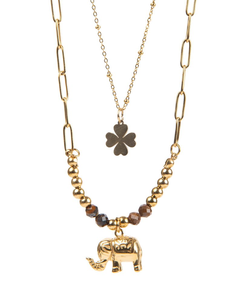 EDELSTAHL KETTENSET 18K VERGOLDET "DOPPELTES GLÜCK"