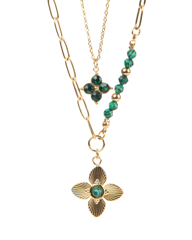 EDELSTAHL KETTENSET 18K VERGOLDET GRÜNER KLEE