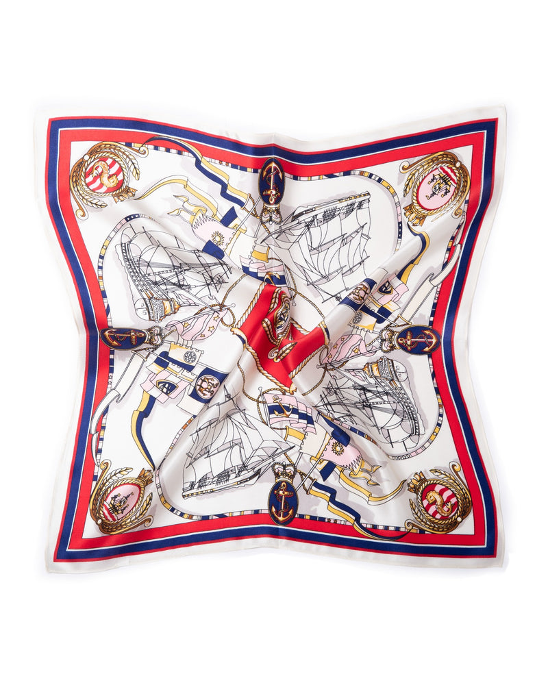 SILK SCARF PREMIUM WITH HAND-ROLLED EDGE SQUARE 86X86, MARITIME BAROQUE