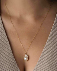 Ce magnifique collier de haute qualité avec une seule grande perle baroque respire l'élégance et le luxe. La chaîne est en Goldfilled 14 carats. La perle baroque a une taille exceptionnelle de 22x12mm. La chaîne est réglable entre 54 et 58 cm. Cette longueur optimale confère à celui qui le porte un sex-appeal subtil. Dans presque toutes les cultures, les perles incarnent la féminité et la pureté gracieuses. Ils ont un effet à la fois calmant et clarifiant. Ce collier spécial met en valeur la féminité et la beauté de celle qui le porte et lui donne un look décontracté mais élégant !