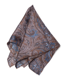 Cet élégant foulard en soie au motif cachemire classique, réalisé dans la soie sergée la plus fine, allie tradition et style. Le motif artistique en vert mousse, beige et cuivre rappelle l'art textile oriental et confère à cet accessoire un rayonnement à la fois traditionnel et intemporel.